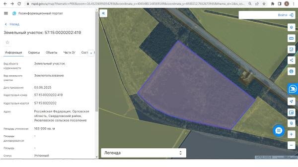 Название: Земельный участок с кадастровым номером 57:15:0020202:419, площадью 163 000 кв.м., расположенный по адресу: Российская Федерация