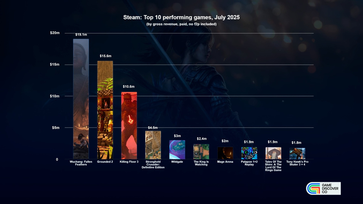 Британские аналитики (это почти как британские ученые!) из GameDiscoverCo в очередной раз посчитали выручку десяти самых богатых новинок прошлого месяца. Подписывайся на канал. Нас уже 19000! Не забудь поставить лайк! Параллельно был составлен топ 10 лидеров по количеству проданных копий и само собой эти топы не совпадают по распределению мест из-за разности цен на игры. Так Mage Arena, которая порвала всех конкурентов по количеству проданных копий (719 000) оказалась всего на седьмом месте по выручке. $1 800 000 выручка за июль. Не только ностальгия - двигатель продаж ремейков игр про скейтера Тони Хоука, но и катастрофически малое количество игр в ниже симуляторов этого уличного вида спорта. В данный момент еще только EA планирует вернуть свою старую скейтерскую игру .skate и в данный момент только набирает волонтеров-тестировщиков, коих собралось уже более миллиона, согласно заявлению компании. $1 900 000 выручка за июль. Очень попадающая в настроение фанатов вселенной игра, как мн