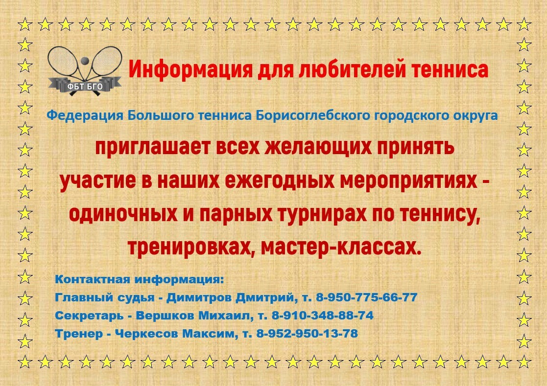 Приближается время ежегодных теннисных мероприятий. Все подробности в афише.
