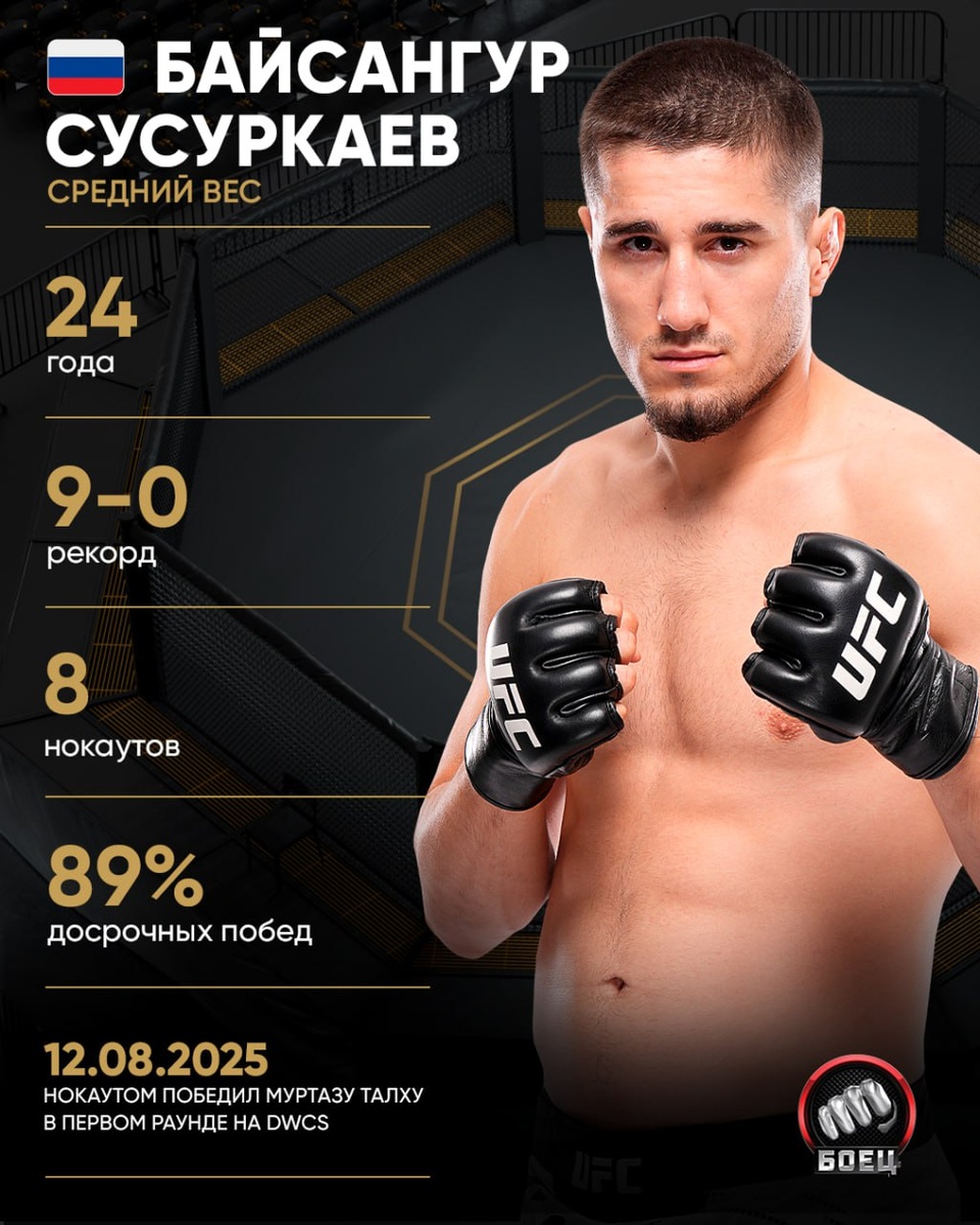 В эти выходные в UFC дебютирует Байсангур Сусуркаев 🇷🇺 На этой неделе он дрался на Претендентской серии Дэйны Уайта, где добыл яркую победу нокаутом 👊🔥 И на этой же неделе его ожидает бой на UFC 319. Его соперником станет Эрик Нолан 👀 Всего 4️⃣ дня между двумя поединками. Это новый рекорд промоушена. Предыдущий рекорд был у Хамзата Чимаева (10 дней) 😎 Знакомимся с новичком лиги в этой публикации ⭐️