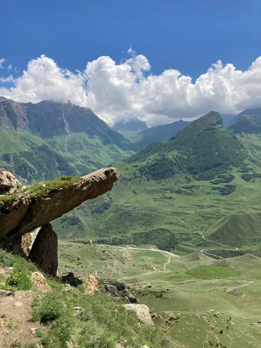 🌄 Безенгийский Язык Тролля — настоящее чудо Кавказа, аналог знаменитого норвежского Языка Тролля. Этот каменный выступ на высоте около 2600 метров над уровнем моря открывает захватывающий вид на легендарную Безенгийскую стену и ледник Безенги — самый большой из сложных долинных ледников Северного Кавказа. Здесь, в самом высокогорном районе России, расположены шесть из восьми пятитысячников Кавказского хребта — и это место по-настоящему для тех, кто готов к приключениям и не боится высоты. Отличные кадры можно сделать в любое время года — не обязательно ждать идеальной погоды, чтобы запечатлеть величие гор и ледника. Постоять на «языке» решаются только самые смелые, ведь ощущение, будто ты паришь над бездной, незабываемо. Безенгийский Язык Тролля — место, где встречаются природа и отвага, а дух гор ощущается каждой клеткой тела.