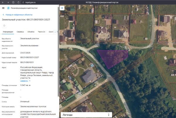 Название: Земельный участок с кадастровым номером 66:21:0601001:3327 площадь 1047 по адресу Российская Федерация, Свердловская область
