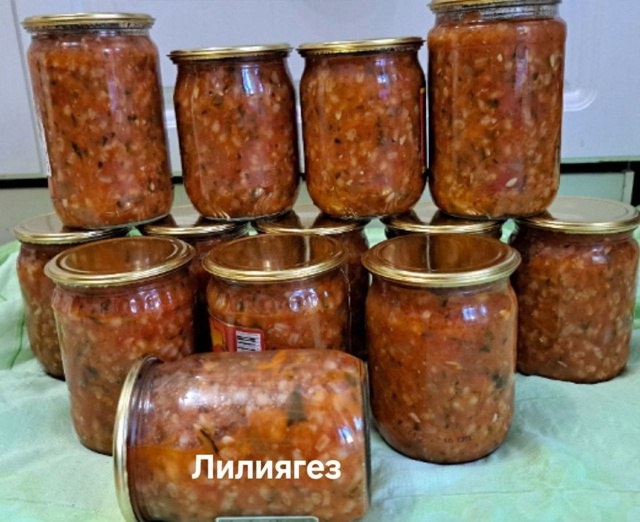 Лилия Әскаровадан рассольник рецепты 2 кг кыяр, 2 кг помидор, ярты кг суган, ярты кг кишер, 300 гр перловка, бер аш кашыгы өеп тоз, 1 −2 аш кашыгы өеп песок, 4-5 аш кашыгы уксус, ярты стакан май, бер чәй кашыгы төелгән борыч, 4-5 шт лавр, яраткан кеше ике аш кашыгы томат пастасы салсагыз була. Бөтенесен бер чама турагыз, перловканы суга салып бүрттереп алыгыз, пешермәгез, суын түгеп салырга әзер торсын, башта суган кишерне кыздырыгыз, аннары кыяр помидор перловка китә, тәмләткечләр, 45 минут пешә. Стерильле банкаларга тутырып, одеял астында тотабыз. Аннары салкын урында саклыйбыз.