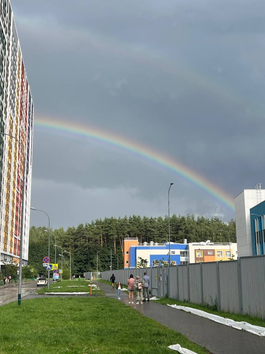 У нас на районе заработала фабрика по производству радуги 😂 каждый день выдает, иногда по две на дню! А вчера даже двойная была, наверное, новый образец отрабатывали 😀