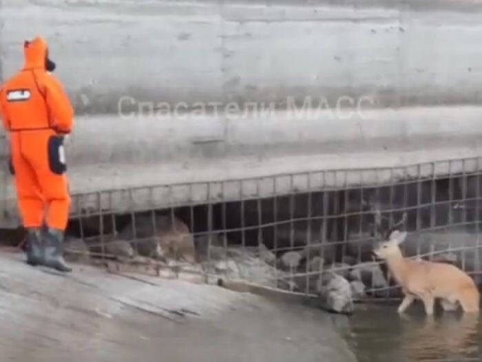 Новосибирские спасатели помогли косуле выбраться из воды на Шлюзе