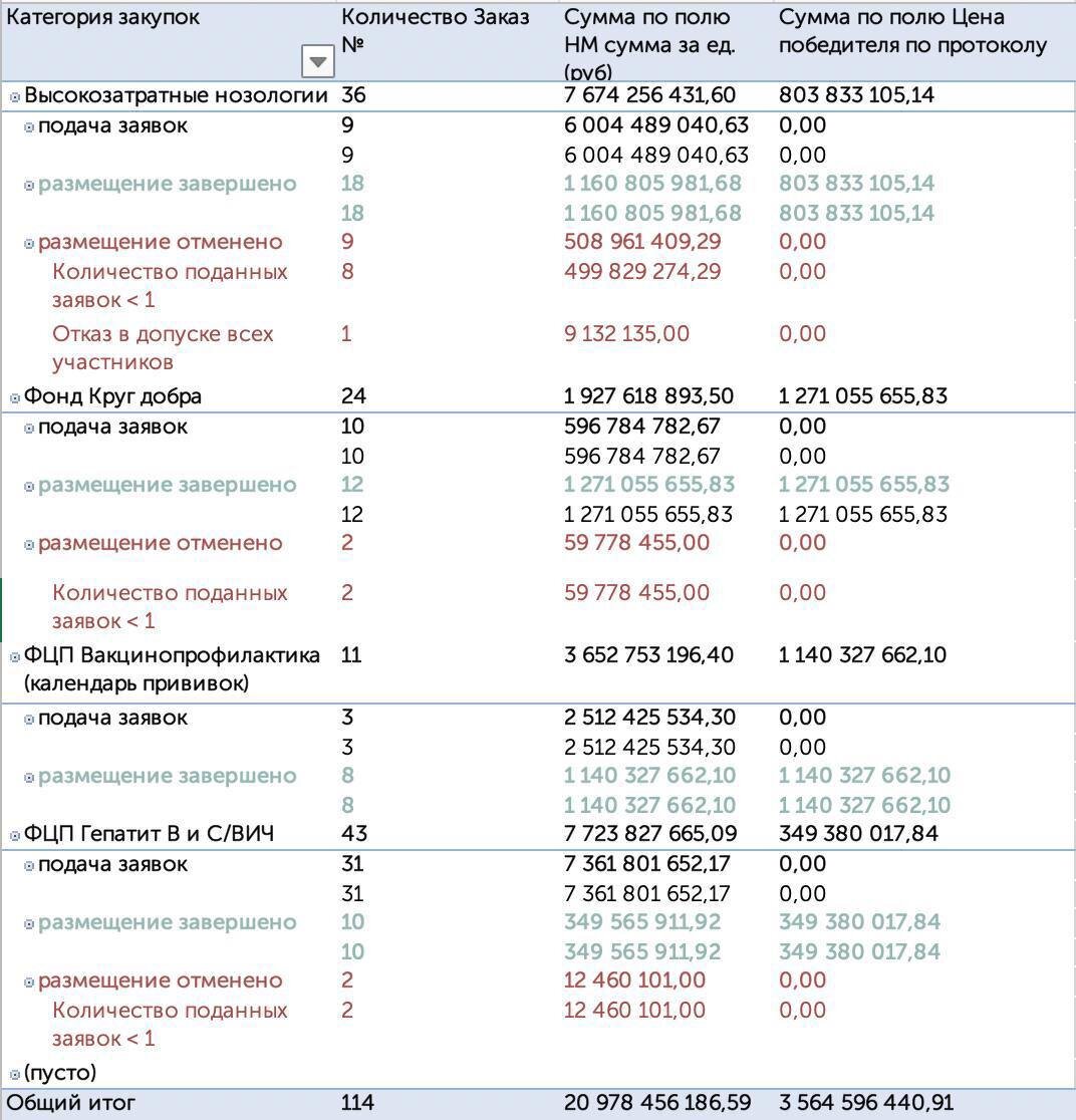 Проанализировали динамику закупок в 2025г. (Заказчик ФКУ Федеральный центр планирования и организации лекарственного обеспечения граждан министерства здравоохранения РФ) в рамках следующих категорий: ✔️ Количество объявленных аукционов - 114 шт. ✔️Объём закупок в руб. - 20,98 млрд рублей. ✔️Количество упаковок – 106,1 млн. Из них: 🔺Высокозатратные нозологии – 7,67 млрд руб. (36 заказов, 11,57 млн упаковок) 🔺Фонд Круг добра – 1,93 млрд руб. (24 заказа, 5,54 тыс упаковок) 🔺Вакцинопрофилактика (прививки) – 3,65 млрд руб. (11 заказов, 3,35 млн упаковок). 🔺ФЦП Гепатит B и C/ВИЧ – 7,72 млрд руб. (43 заказа, 91,2 млн упаковок). ✔️Этапы размещения заказов 🔹Высокозатратные нозологии 🔹Фонд Круг добра 🔹Вакцинопрофилактика (прививки) 🔹ФЦП Гепатит B и C/ВИЧ ✔️Наибольшая доля по стоимости: Высокозатратные нозологии и ФЦП Гепатит B и C/ВИЧ (около 75% от общего бюджета). ✔️Наибольшее количество упаковок: Программы по Гепатиту B и С/ВИЧ (85% от всех упаковок). ✔️Фонд Круг добра направляет б