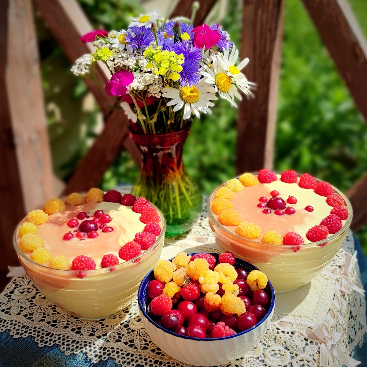 Как же я люблю последнее время смузи из голозерного овса! Сказочно вкусно. ⠀ Часть малины оставляю для украшения. ⠀ Очень тщательно перемалываю овес, желтую малину и половину остальных ингредиентов до однородной СЛИВОЧНОЙ консистенции. Это будет кремовый слой. Откладываю в бокалы. Добавляю в блендер оставшиеся ингредиенты и красную малину и немного перемалываю. Это будет фруктовый слой. ⠀ Добавляю в бокал сбоку (или сверху в зависимости от формы). Украшаю малиной и ягодами с огорода.
