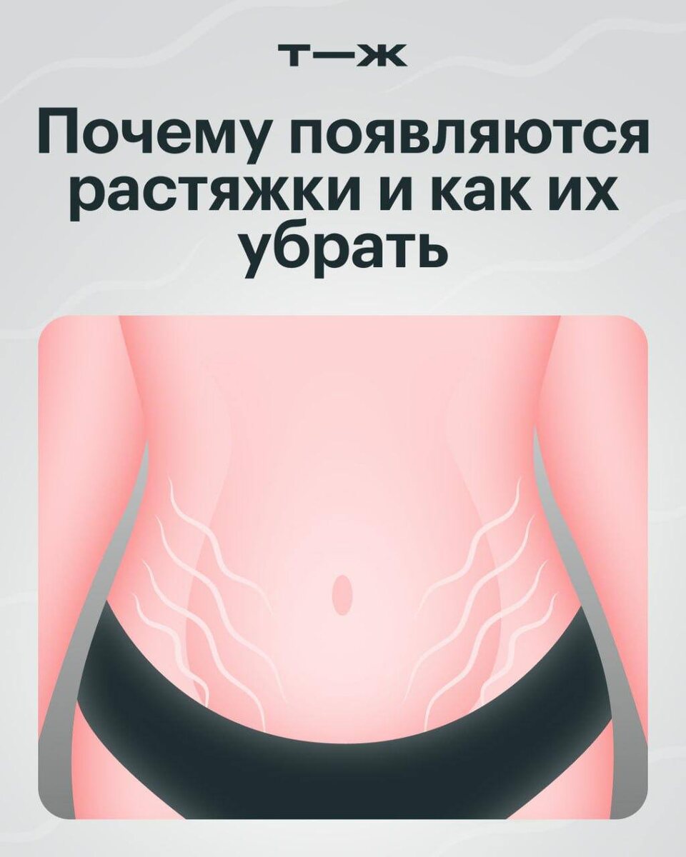 Растяжки, или стрии, — это рубцы, которые появляются из-за чрезмерной механической нагрузки на кожу. Они встречаются у многих людей, но у женщин, особенно беременных и подростков, чаще всего. 〰️ В норме кожа эластична, поэтому быстро восстанавливает форму. Но у некоторых людей в ней меньше коллагена и эластина, которые придают прочность. В итоге кожа хуже растягивается, и чрезмерная нагрузка на нее приводит к микротравмам и воспалению, которые заканчиваются появлением стрий 〰️ Растяжки изначально красного цвета. Со временем травмированные сосуды заживают и растяжки становятся белыми — как обычные шрамы. ⬇️ Разбираемся, можно ли избавиться от стрий и помогут ли в этом популярные средства от растяжек и домашние способы: https://t-j.ru/z-tg/stretch-marks-problem/