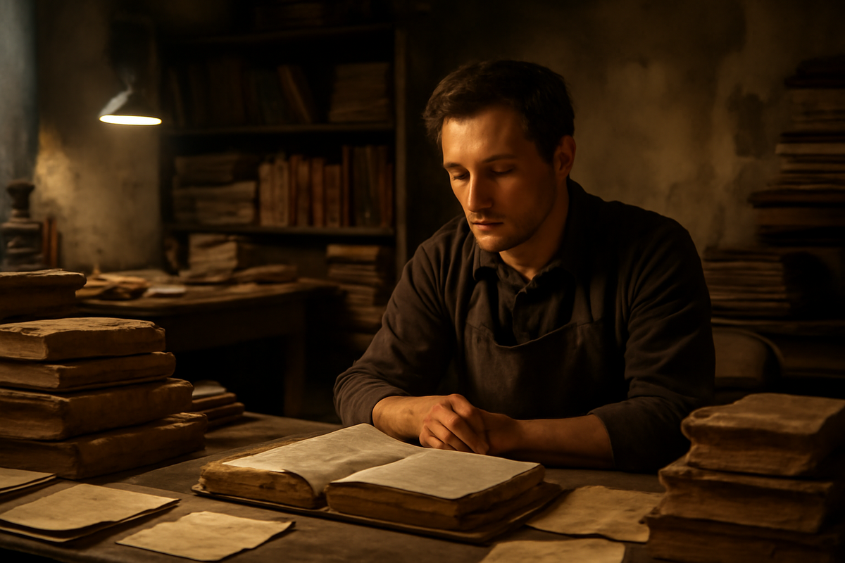 Я взял в руки самую безнадёжную — французский роман XVIII века. Кожаный переплёт рассохся и треснул, страницы пожелтели и стали хрупкими, как осенние листья, часть текста была залита чернилами. Раньше я бы отложил её на потом, испугавшись объёма работы. Но сейчас… сейчас я почувствовал с этой книгой странное родство.