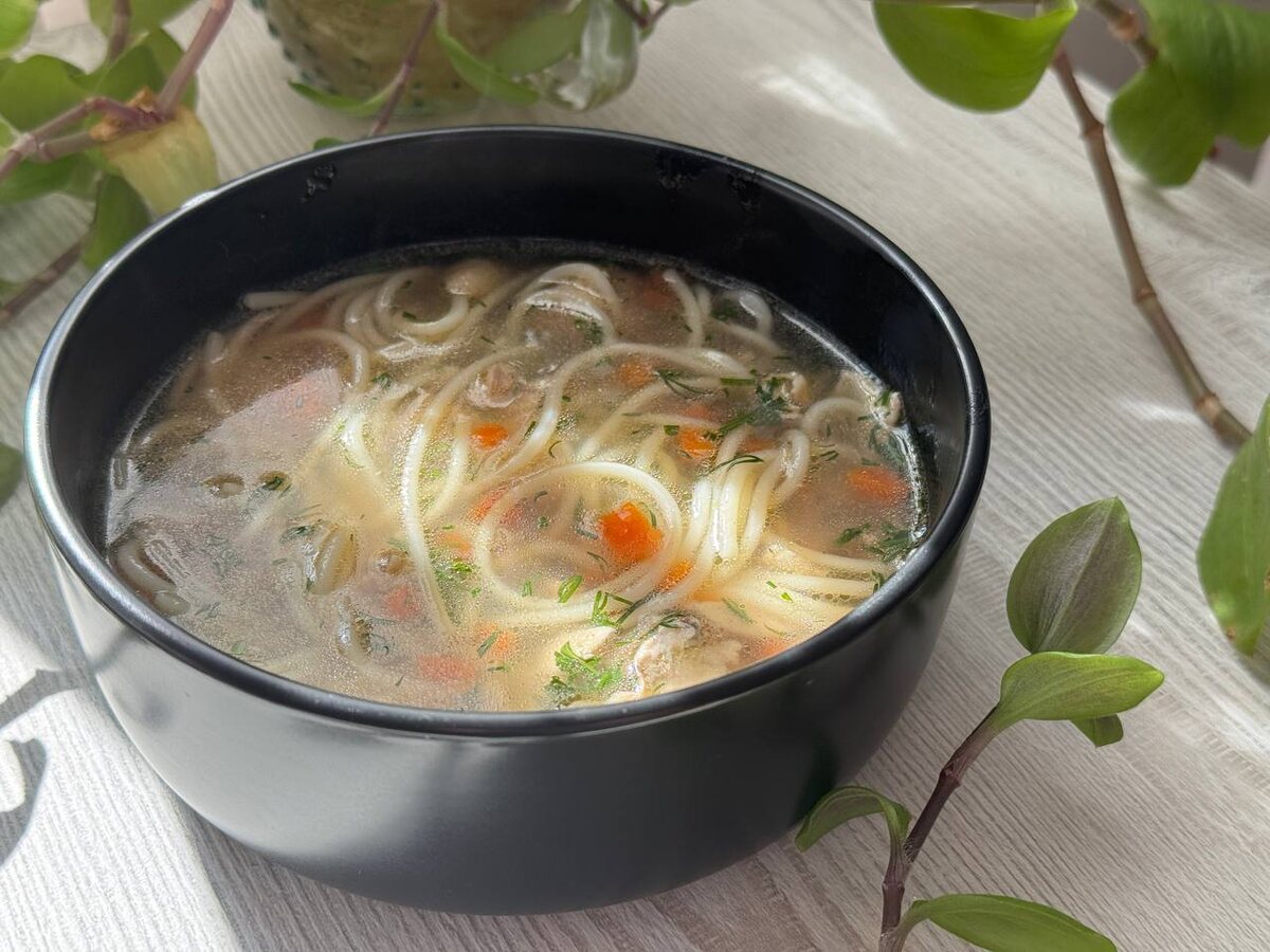 Ингредиенты: 2 куриных окорочка 2 моркови 1 луковица ½ ч. л. молотого имбиря ¼ ч. л. молотой корицы ¼ ч. л. молотой гвоздики 1 палочка корицы 2 звездочки бадьяна Лапша (яичная, рисовая или пшеничная – по желанию) Соль, перец – по вкусу Свежая зелень (петрушка, кинза, зеленый лук) Приготовление: Окорочка залить холодной водой, довести до кипения, слить первый бульон (это сделает суп прозрачным). Залить чистой водой, добавить 1 луковицу (целиком), 1 морковь (крупно нарезанную), палочку корицы, бадьян, гвоздику и имбирь. Варить на среднем огне 20 минут под крышкой. Бульон процедить, курицу разобрать на волокна (косточки можно выбросить). Лук из бульона измельчить блендером и вернуть в суп (для насыщенности вкуса). Вторую морковь нарезать мелким кубиком. Довести бульон до кипения, добавить морковь, варить 5–7 минут до мягкости. Добавить лапшу и курицу, готовить еще 3–5 минут (время зависит от типа лапши). Посолить, поперчить, добавить рубленую зелень. Ароматный, согревающий суп готов! Пода