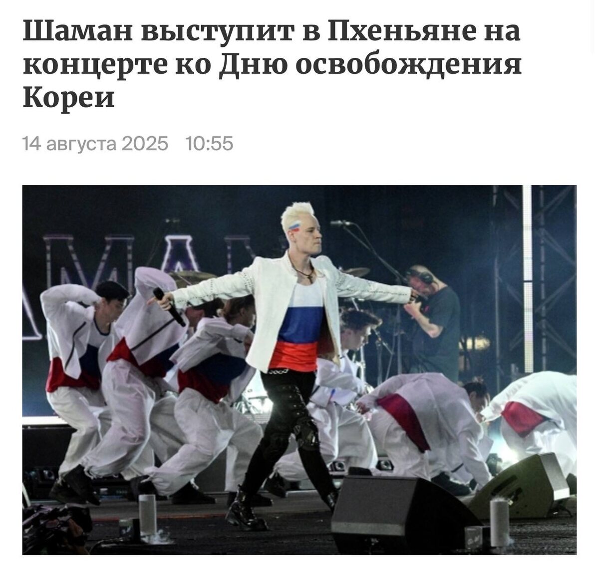 Шаман завтра даст концерт в Северной Корее — это не шутка. Певец уже прилетел в Пхеньян, чтобы выступить на мероприятии, посвящённом 80-летию освобождения Корейского полуострова от японского господства. Я русский корейский 😉😉 CtrlAltDelights- подписаться