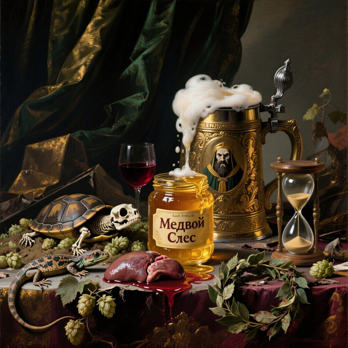 Сегодня же его имя используют для оправдания потребления крепкого, массового пива, ставшего орудием зависимости и смертности *(алкоголь убивает 3 млн/год, ВОЗ).*