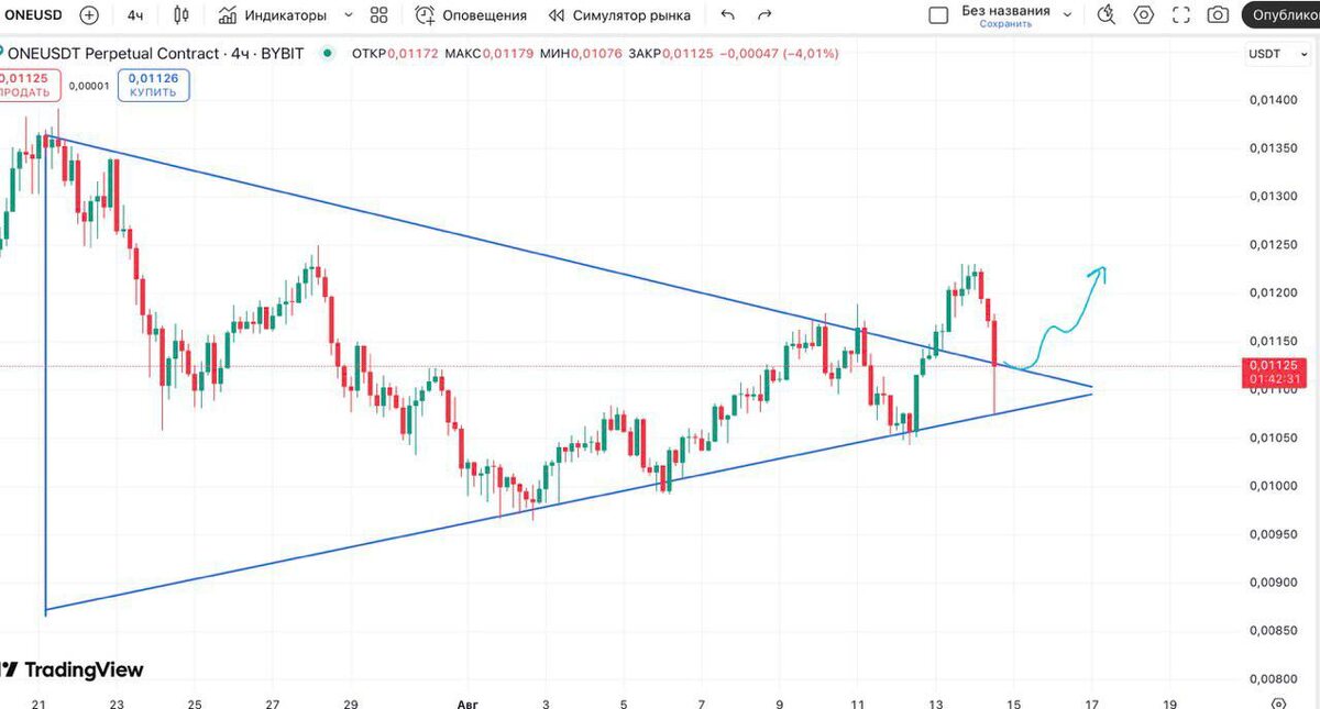 Из за неутешительного новостного фона главная валюта пролилась примерно на 5%, альты ушли вниз в среднем на 10% - это значит, что можно ожидать неплохие ретесты сопротивлений и трендовых на таком рынке. Вот вам один из таких примеров: ONEUSDT Ранее по активу вышли из симметричного треугольника, после чего последовал ретест верних границ треугольника. Прикупил актив в Лонг 💭