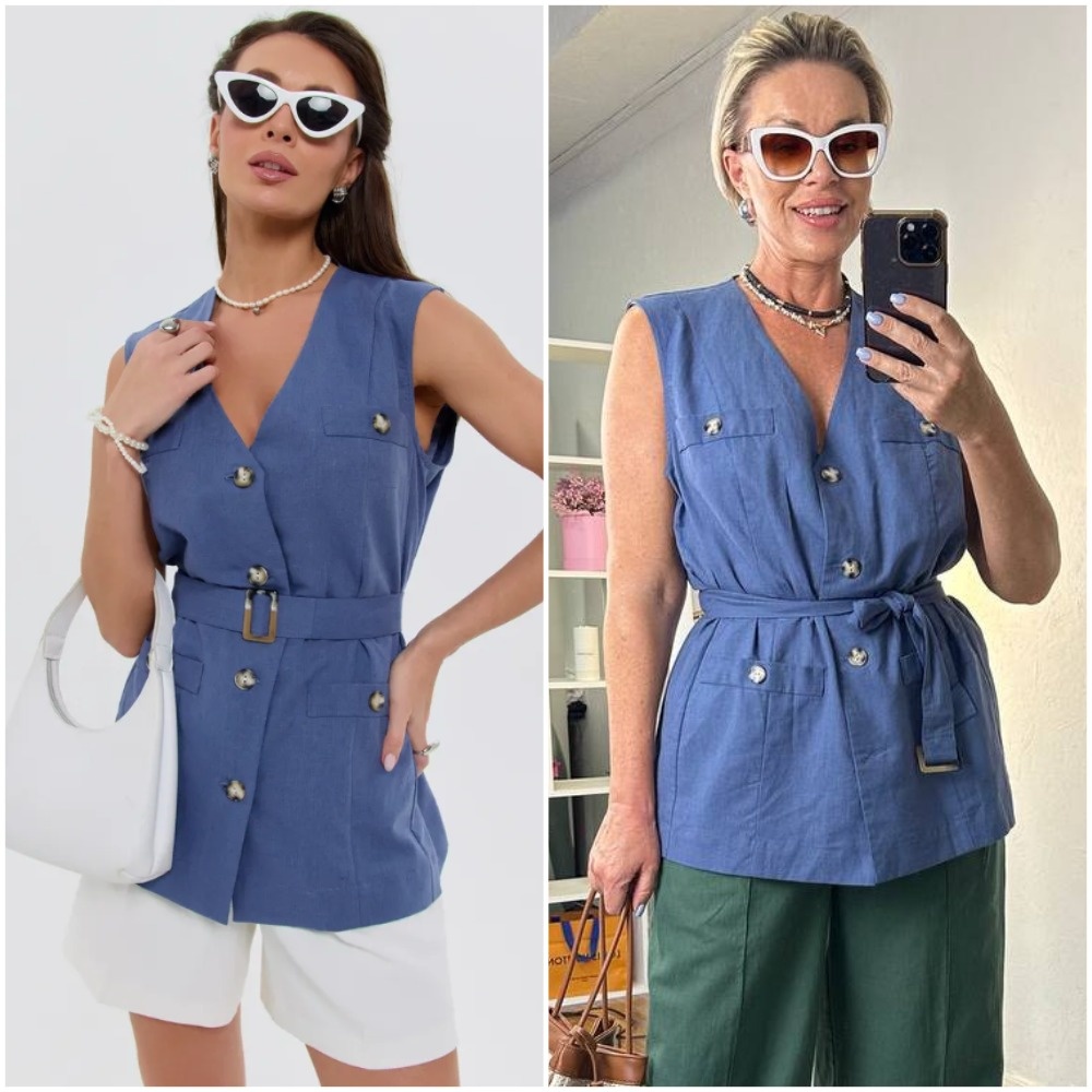 Здравствуйте, дорогие читатели! Меня зовут Ирина, я - стилист, и на этом канале показываю одежду и аксессуары с Wildberries такими, как они есть, то есть, из серии "ожидание/реальность". Мои параметры: рост 169 см, вес 67 кг, 94-74-100 ✅Основной канал: Стильно - не значит дорого! Ставьте лайк в поддержку канала, и давайте смотреть на мою сегодняшнюю покупку. Синий льняной жилет: лаконичный акцент Этот жилет в природном синем оттенке привлекает качеством исполнения и продуманной простотой. Пояс из комплекта мягко обозначает линию талии, не создавая жестких рамок. Натуральный состав из льна и хлопка обеспечивает комфорт в жару – ткань приятно холодит кожу, сохраняя опрятный вид. Удлиненный крой добавляет элегантности, а съемный пояс позволяет менять степень прилегания. Особенно впечатлила обработка деталей: ровные строчки, аккуратные пуговицы, идеально подогнанные швы. Жилет выглядит дорого, сохраняя при этом естественную легкость льняной ткани. Универсальный синий цвет средней насыщенно