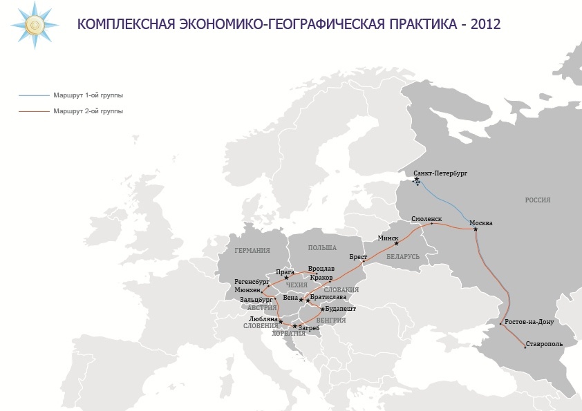 В 2012 году "дальняя" комплексная географическая практика студентов 3 курса Северо-Кавказского федерального университета проходила в странах Евросоюза (заграничная группа) и Санкт-Петербурге (российская группа) со 2 по 14 мая: