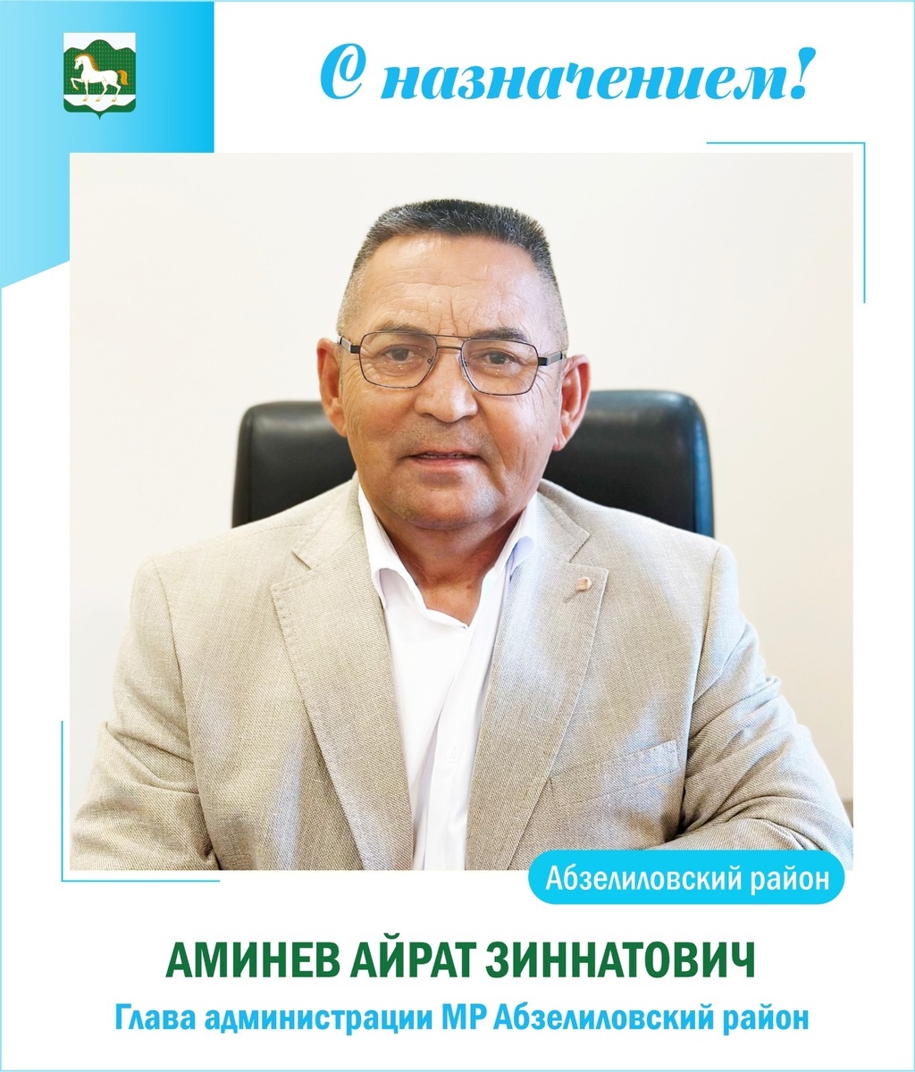 Главой Абзелиловского района назначен Айрат Аминев. Об этом сообщили в соцсетях администрации муниципалитета. В течение последних двух месяцев Аминев занимал пост главы администрации с приставкой и. о. «Обладая значительным опытом, знанием регионального законодательства и развитыми управленческими компетенциями, Айрат Аминев зарекомендовал себя профессионалом высокого уровня, способным продуктивно взаимодействовать с населением и принимать взвешенные решения для устойчивого социально-экономического роста территории. Убеждены, что под руководством нового руководителя муниципальный район будет продолжать стабильно развиваться, улучшая условия проживания граждан и укрепляя межнациональное согласие среди населения», — отметили в районной администрации. Ранее в Башкирии назначили главу Куюргазинского района.