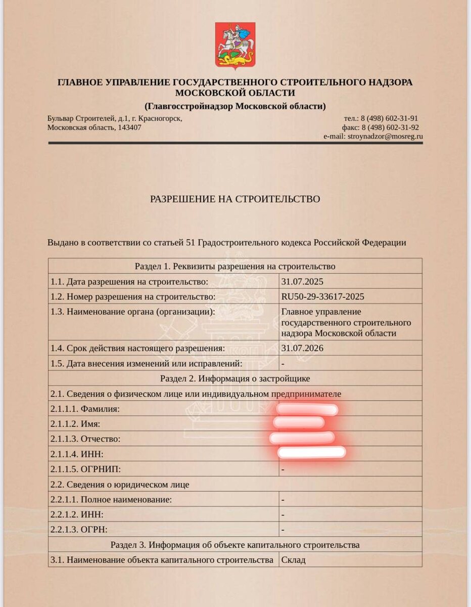 Склад в Воскресенске - Разрешение на строительство