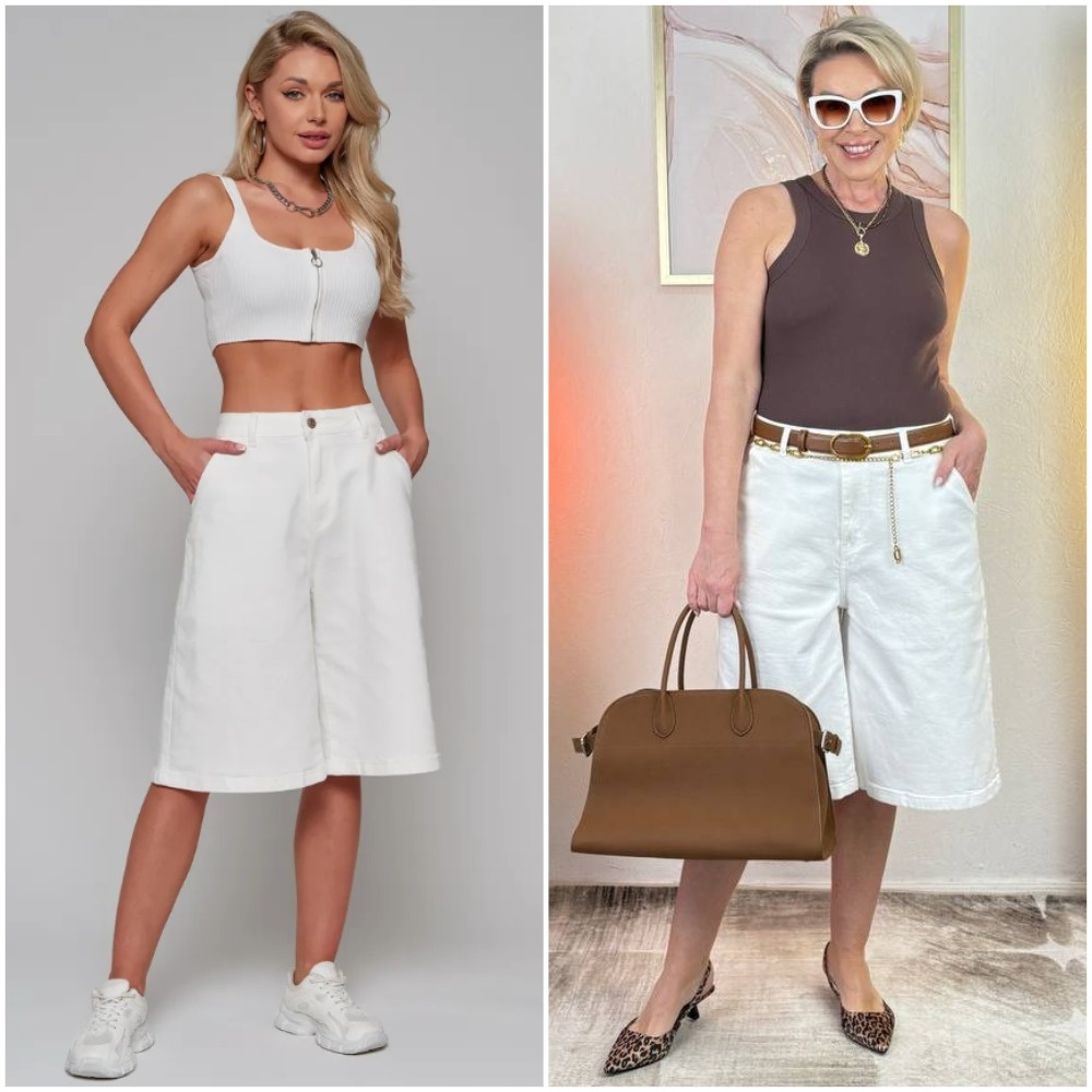 Здравствуйте, дорогие читатели! Меня зовут Ирина, я - стилист, и на этом канале показываю одежду и аксессуары с Wildberries такими, как они есть, то есть, из серии "ожидание/реальность". Мои параметры: рост 169 см, вес 67 кг, 94-74-100 ✅Основной канал: Стильно - не значит дорого! Ставьте лайк в поддержку канала, и давайте смотреть на мою сегодняшнюю покупку. Белые джинсовые бермуды: воздушный крой Эти шорты-бермуды в мраморно-белом оттенке предлагают свежий взгляд на летний гардероб. Свободный крой оверсайз создает эффект воздушности, а эластичный деним с добавлением эластана обеспечивает комфорт в движении. Высокая посадка мягко подчеркивает талию, а длина миди (ниже колена) добавляет образу элегантности. Двойная застежка (молния + пуговица) и продуманные карманы сочетают практичность с лаконичным дизайном. Особенно впечатляет качество материала – плотный, но дышащий хлопок с легким стрейчем. Мраморный оттенок белого выглядит дорого и менее маркий, чем классический вариант. Универсаль