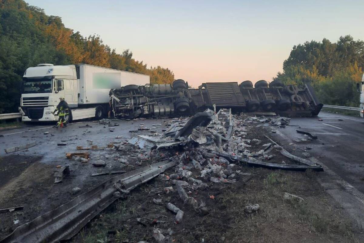 «Водитель потерял контроль над транспортным средством, что привело к столкновению с отбойником», - рассказали дорожные полицейские. Грузовик по инерции продолжил движение и столкнулся с ещё одним грузовиком «DAF», после чего фура перевернулась. Немалая часть полиэтиленовых бутылок полопалась при ударе об землю, жидкость растеклась по проезжей части. Дорога стала липкой и приторно сладкой.