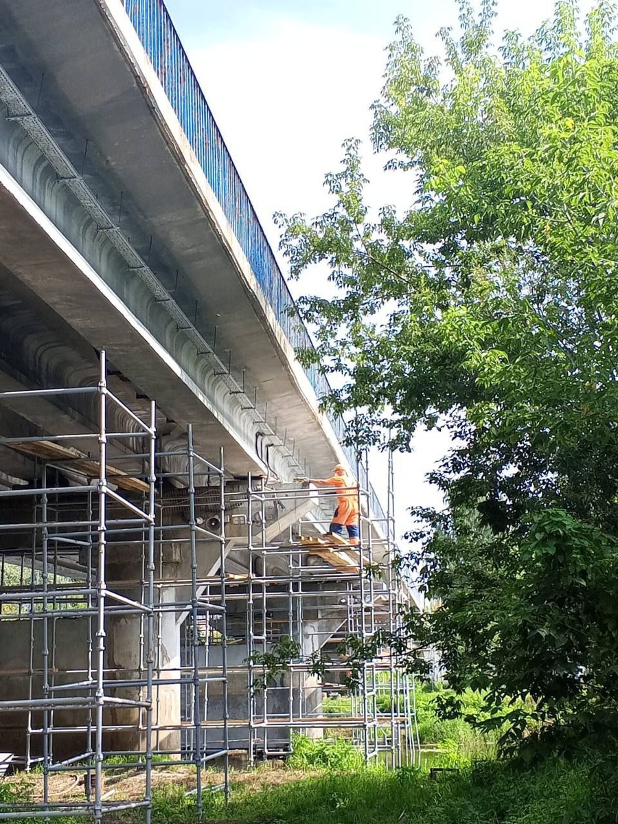 Длина моста через реку Уводь - почти 150 метров. Главный региональный дорожный подрядчик планирует заменить деформационные швы, систему водоотведения, обновить барьерное ограждение и перила на лестничных сходах, покрасить мост и опоры и уложить асфальтобетонное покрытие.