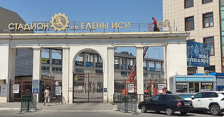 «В связи с постановлением правительства Республики Дагестан от 18.08 2023г. №335 о переименовании Стадиона им.Е. Исинбаевой на ГБУ РД «Стадион «Труд», производится демонтаж прежнего названия», – а это уже свежий контент, замкнувший круг.