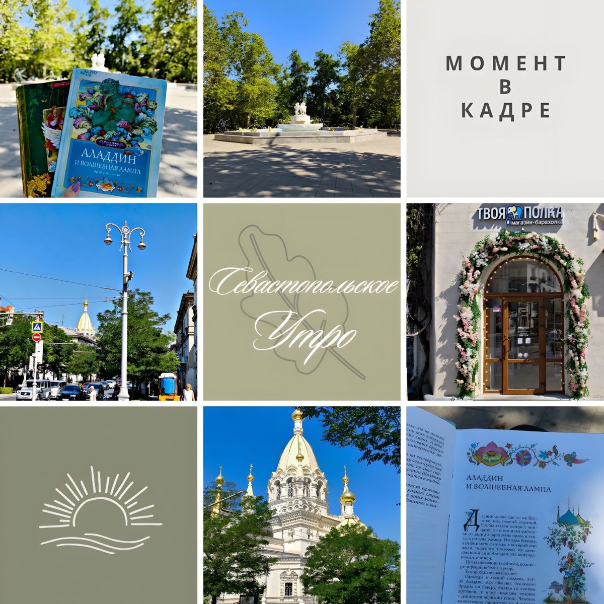 КАК ЖЕ МНЕ НРАВИТСЯ ГУЛЯТЬ ПО СЕВАСТОПОЛЮ! ОСОБЕННО УТРОМ. Когда на улице ты чувствуешь аромат морского воздуха? И нет еще знойной жары. Смотришь, как горожане спешат по своим делам... А есть и те, кто неспешно гуляет с малышами в колясках. Наблюдаешь, как мамочки размеренным шагом наслаждаются тишиной, пока ляльки спят. Мы с сыном сегодня сходили в библиотеку, взяли книги для чтения и пошли в Комсомольский парк. Там можно отлично провести время с детками: достаточно развлекательных конструкций, верёвочных лабиринтов, качелей... И лавочек, чтобы посидеть и почитать. Чем я, в принципе, сегодня и занималась на досуге — у меня были восточные детские сказки. Про Алладина, про Синдбада-морехода... Забавно, как сразу мозг реагирует на детские сказки после обычного взрослого чтива! Мне даже понравилось. И думаю: а не перечитать ли ещё какие-нибудь детские сказки? Успела сделать пару красивых фотографий: храма, любимого магазинчика с подарками и, конечно же, фонтана. А вернувшись домой, п