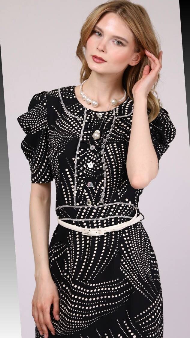 Потрогаем наше замечательное платье - тяжелый шелковый креп с классическим рассеянным горошком.