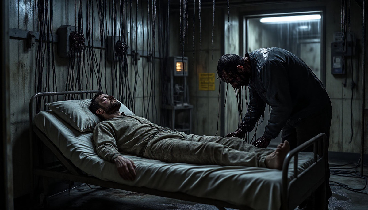Из его пальцев, из-под ногтей, начали расти тонкие, чёрные, блестящие нити. Они, как живые, потянулись к лицу спящего бригадира, к его рту, к ноздрям. Ковалёв дёрнулся во сне, захрипел. А «Рыжий» просто стоял и смотрел, как его нити проникают в тело другого человека.