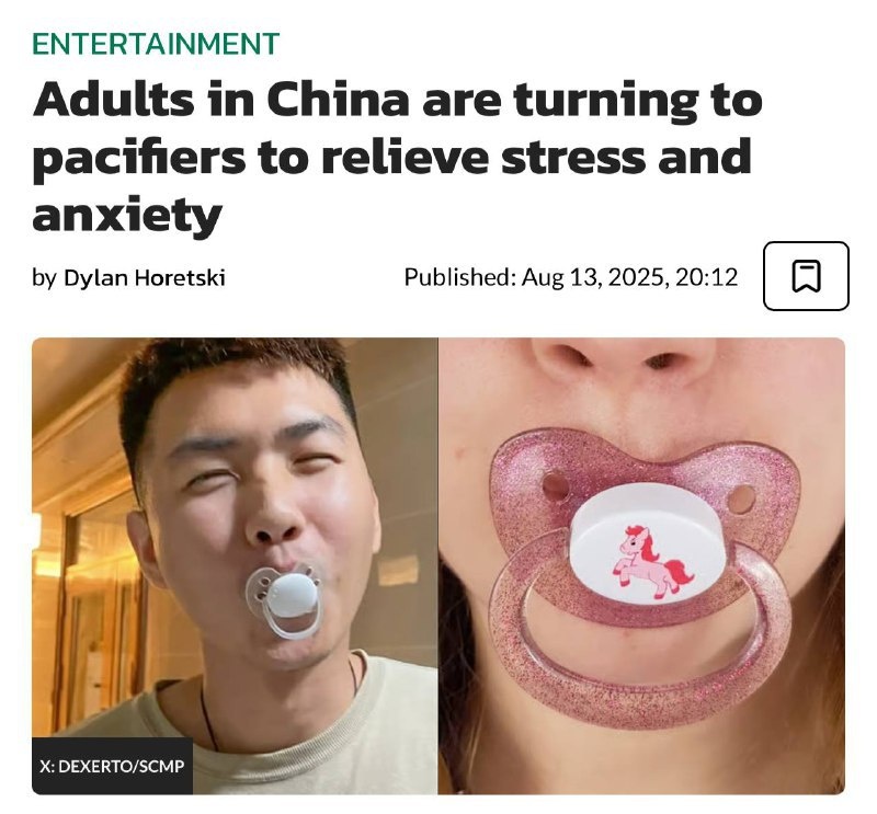 Китайские зумеры массово подсели на пустышки для младенцев — так они борются со стрессом и тревожностью.