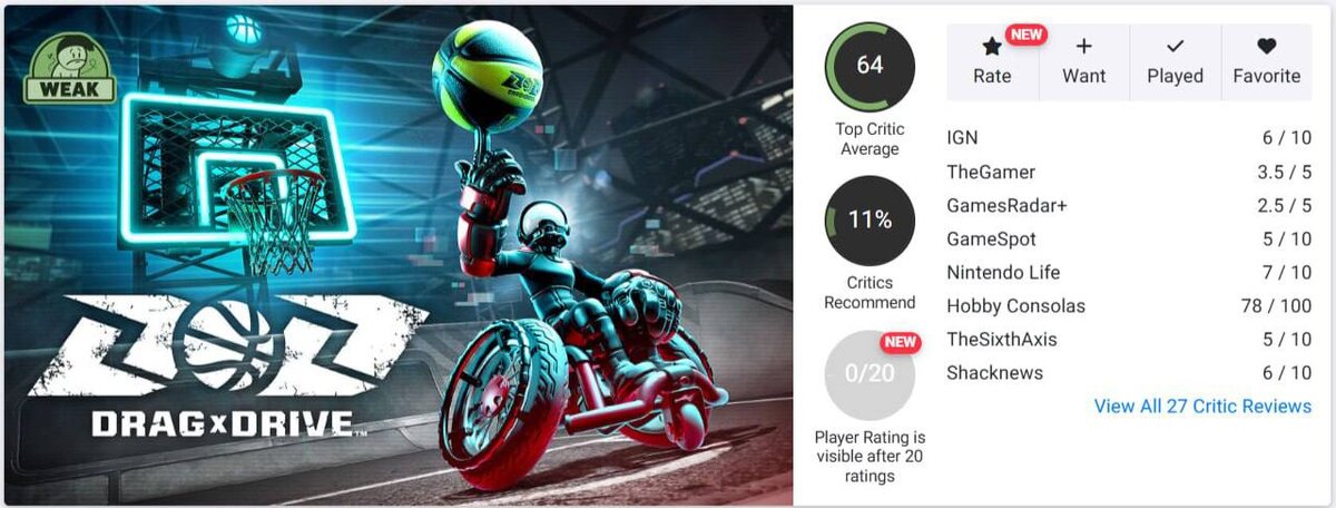 Drag x Drive вышла эксклюзивно на Nintendo Switch 2. Критики приняли игру прохладно — на Opencritic её рейтинг составляет всего 64 балла на основе 27 рецензий. Цена игры невысока — 19,99$ (~1600₽). Русская локализация отсутствует.