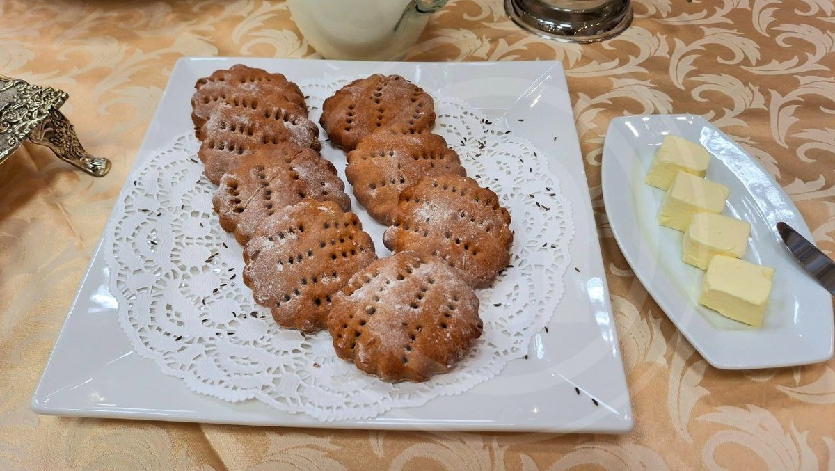 Пока противни с лепёшками румянились в духовках, участники мастер-класса собрались за большим столом с самоваром. Пили ароматный чай, угощались пирогами и жбенями, испечёнными специально для застолья, и оживлённо обсуждали, что же придаёт тверскому хлебу "тот самый" вкус. Одни настаивали, что секрет в плотной раскатке теста, другие говорили про тмин, а кто-то считал, что главное – щедро смазать лепёшку сметаной или мёдом уже перед подачей.