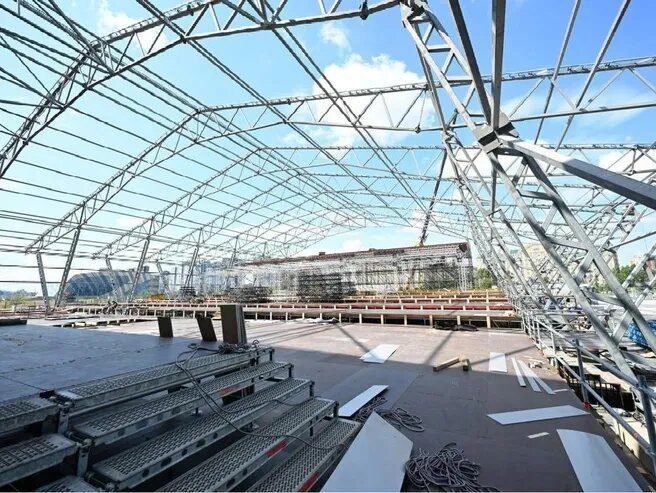 Строительство концертной площадки New Wave Hall близится к завершению. Конструкцию размером 35 на 25 метров привезли в Казань с федеральной территории «Сириус». Вместимость зала составляет 2,8 тысячи человек, а монтаж занял всего месяц. В городской мэрии отметили, что осталось только установить зрительный зал.