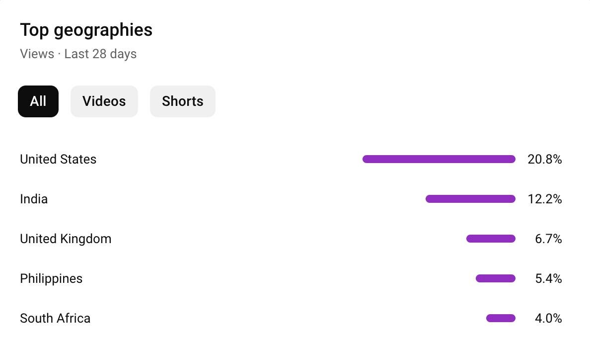 Очень хорошо попал в географию аудитории... Можно начинать рассматривать партнёрские программы. Тот же Амазон подключать и ссылочки в описание и в комменты размещать.