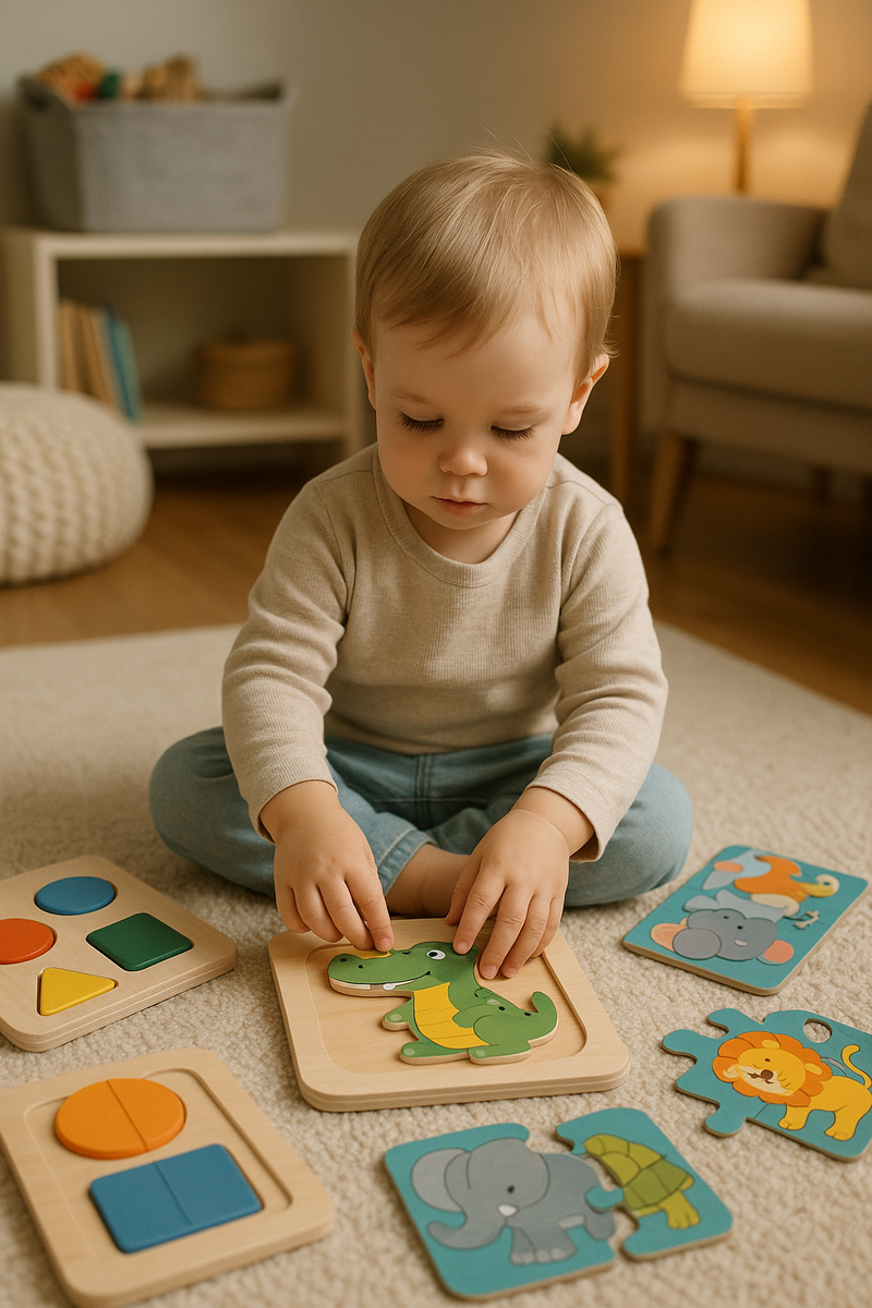 Пазлы — это не просто игрушки, которые занимают ребенка. Это настоящие тренажеры для мозга, которые помогают развивать важнейшие навыки: зрительное восприятие, координацию глаз и рук, логику, терпение и концентрацию. Важное замечание: не все пазлы одинаково полезны! Как не попасться на маркетинговые трюки с яркими изображениями Синего трактора или Барбоскиных и выбрать действительно качественные пазлы для малыша? Давайте разбираться! Пазлы — это универсальный инструмент для тренировки мозга. Через игру ребенок учится: 1️⃣ Уровень — Форма и выемка (с 10-12 месяцев) На этом этапе ребенок учится сопоставлять формы и пространство. Он тренирует хват, внимание и зрительное различие. 2️⃣ Уровень — Пазлы из 2-3 частей (от 1.2 года) Ребенок начинает понимать, что части могут составлять единое целое. Это помогает развивать логику и пространственное мышление. 3️⃣ Уровень — Силуэтные пазлы (от 2 лет) На этом этапе формируется пространственное мышление. Ребенок учится видеть общую форму и сопоста