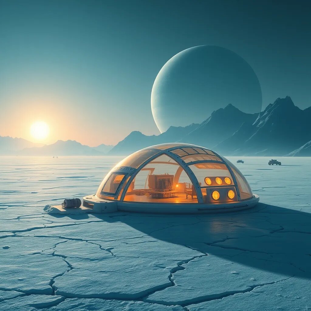 Можно представить купольные поселения под толстым слоем льда, где прозрачные панели пропускают слабый солнечный свет, а тепло и энергия поступают от ядерных реакторов. Подлёдные океаны могли бы стать источником не только воды, но и возможно примитивной жизни, что сделало бы колонию ещё и научной станцией.