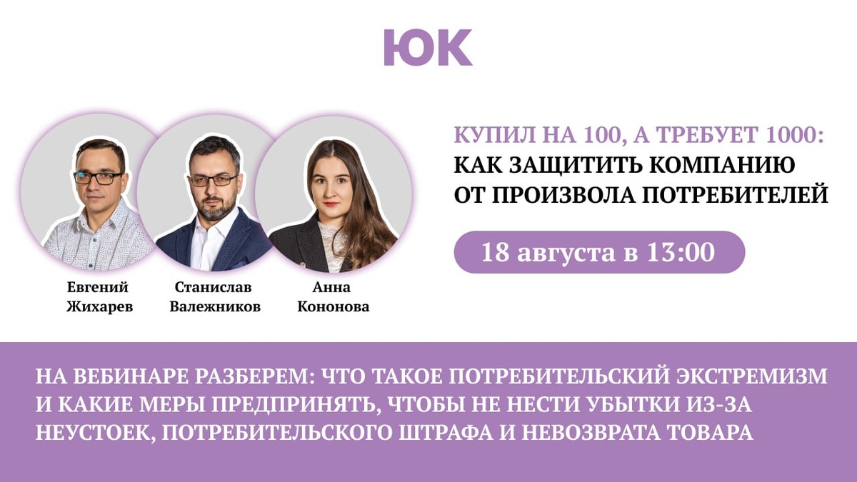 Спешим с анонсом вебинара на тему: «Купил на 100, а требует 1000: как защитить компанию от произвола потребителей»