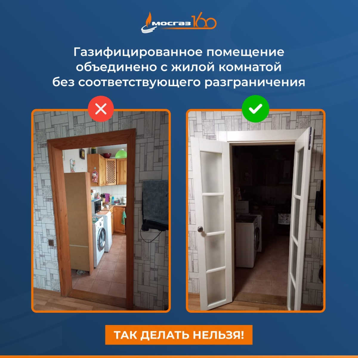 🔔 Напоминаем важные правила эксплуатации газового оборудования! Согласно п. 4.2.2 и 3.25 норматива Москвы по эксплуатации жилищного фонда ЖНМ-2004/03 «Газопроводы и газовое оборудование жилых зданий», утвержденного постановлением Правительства Москвы от 02.11.2004 N° 758-ПП, лицам, пользующимся газовым оборудованием в жилых домах, запрещается производить перепланировку помещений, где установлено газовое оборудование, без предварительного согласования с соответствующими организациями. 📌 Обратите внимание на следующие требования: • Помещение с газовым оборудованием должно быть отделено от жилых помещений плотной перегородкой с дверью. • Любые изменения в планировке необходимо согласовывать, чтобы избежать возможных нарушений и обеспечить безопасность. Свод основных правил газовой безопасности, которые необходимо знать, читайте тут! ❗️Если почувствовали запах газа, немедленно звоните по номеру «104» или «112», добавочный 4. Берегите себя и своих близких! @aomosgaz
