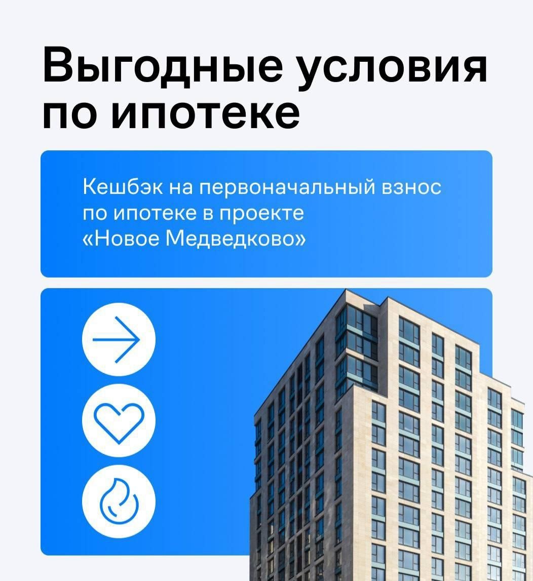 🔥 Кешбэк на первоначальный взнос по ипотеке в проекте «Новое Медведково
