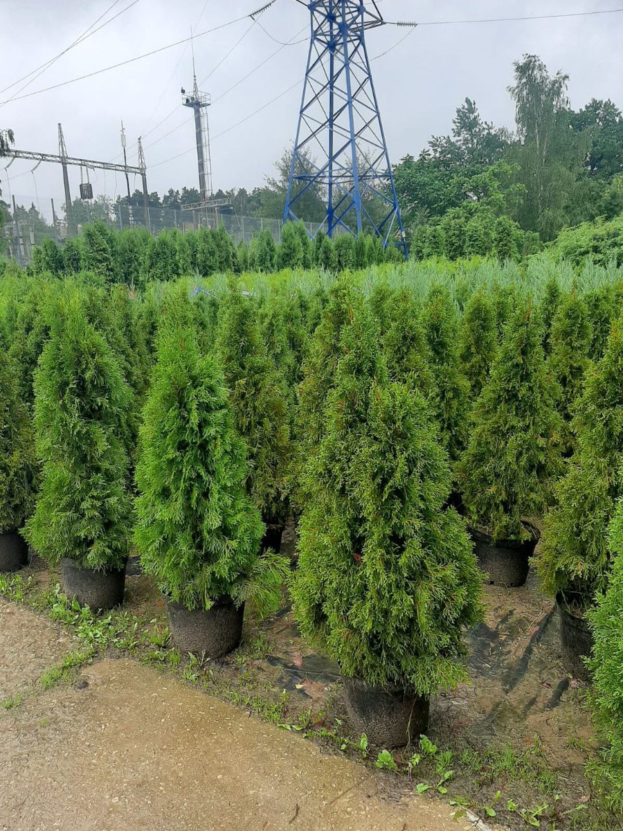 Почему туя Смарагд — лидер ландшафтного дизайна. Туя западная Смарагд — фаворит среди хвойных растений благодаря: Вечнозеленой хвое — сохраняет изумрудный цвет даже зимой. Идеальной форме — коническая крона не требует частой стрижки. Морозостойкости — выдерживает до -30°C. Универсальности — подходит для изгородей, аллей и одиночных посадок Характеристики: Высота взрослого дерева: 4–6 м.