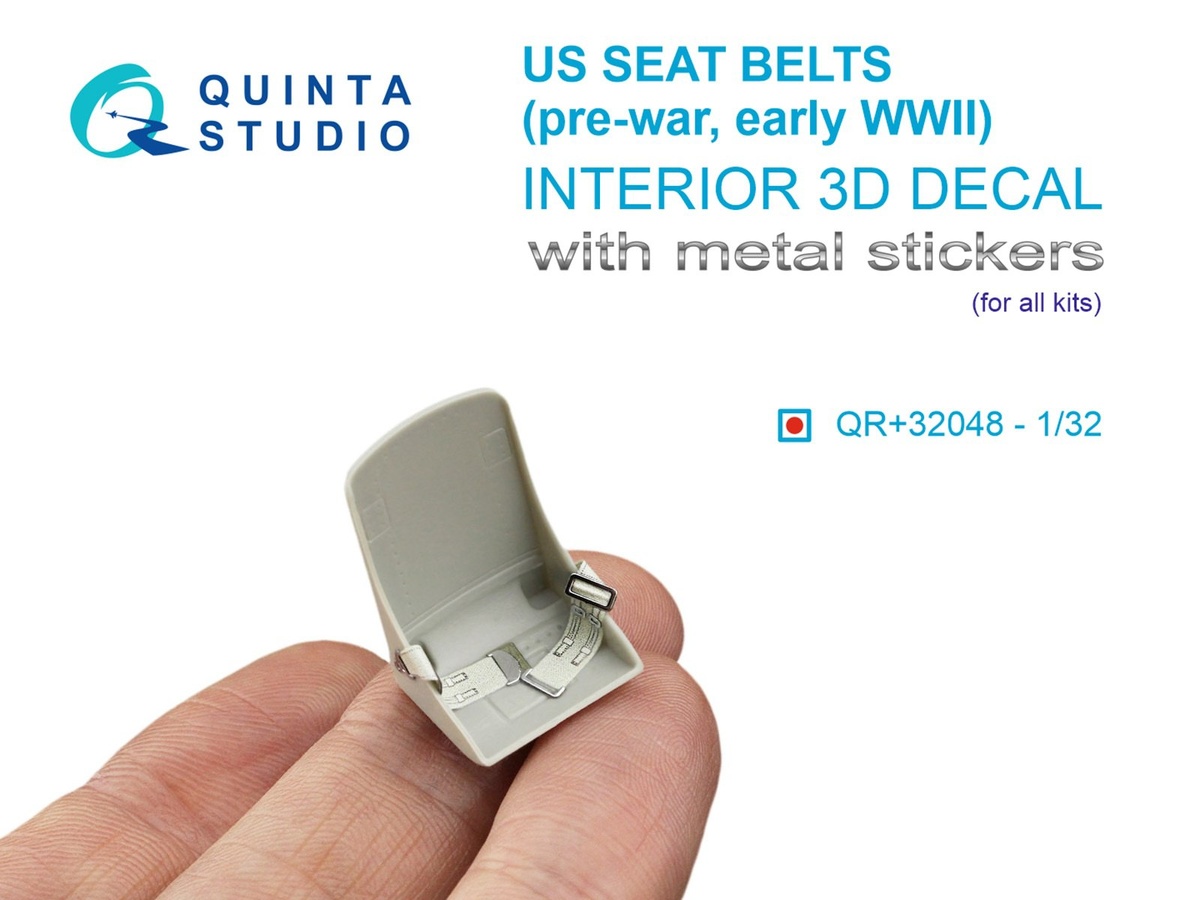 Quinta modelling studio из Пензы выпустила "трехмерную декаль" и металлостикер для имитации привязных ремней с пряжками на моделях истребителей США периода 1930-х годов и начала Второй мировой войны в масштабе 1/32: US seat belts (каталожный номер QR+35048)
