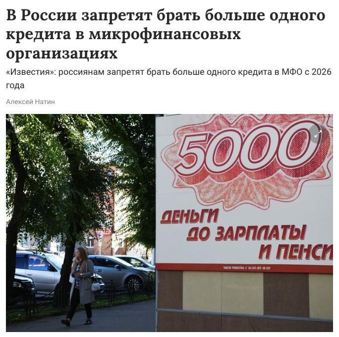 🤩Россиянам запретят брать больше одного займа в МФО с 2026 года, заявил глава комитета Госдумы по финрынку Анатолий Аксаков
