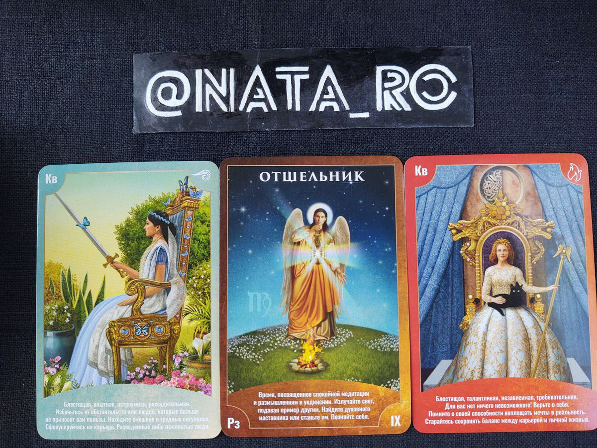 Как Высшие силы помогут Вам? Что надо знать прямо сейчас?... Выпали: КОРОЛЕВА МЕЧЕЙ…ОТШЕЛЬНИК…КОРОЛЕВА ОГНЯ… Колода «Таро мудрости ангелов» была задумана, как один из инструментов общения с Божественными силами. Защитой нашего мира занимается бесчисленная армия ангелов и архангелов. Это воинство возглавляют 15 высших архангелов, самыми известными из которых являются Гавриил, Михаил, Рафаил и Уриил. Их часто называют «большой четверкой». Архангелы покровительствуют определенным сферам жизни. Очень важно понимать, что в отличие от Ваших ангелов-хранителей, которые заботятся только о Вас, архангелы помогают всем. Мы, естественно привыкли полагать, что Отшельник символизирует одиночество. Ничего подобного…Это великий духовный наставник, который стоит на вершине горы и держит источник света для тех, кто желает туда подняться. Он может указывать на необходимость найти учителя, либо самому стать им. На каком жизненном этапе Вы находитесь?... Ищете наставника или готовы учить?... На Аркане От