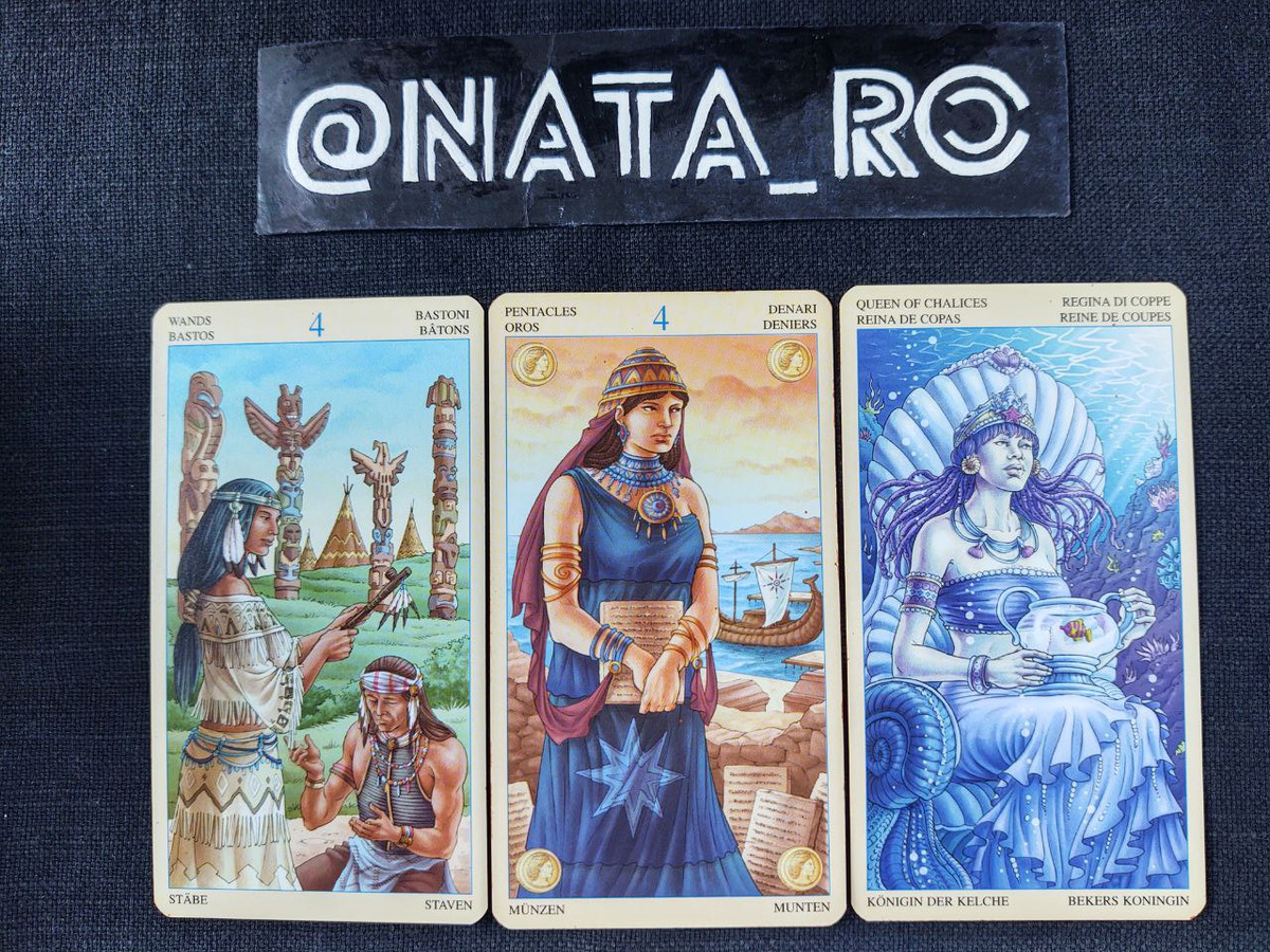 Выпали: ЧЕТВЕРКА ЖЕЗЛОВ…ЧЕТВЕРКА ПЕНТАКЛЕЙ…КОРОЛЕВА КУБКОВ…