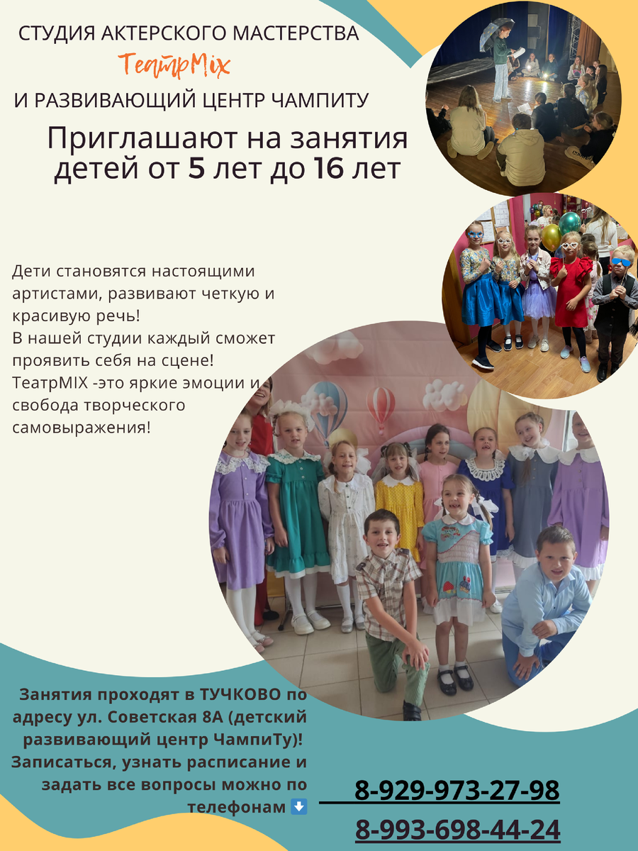 Ваш ребенок: 🔸 Стесняется выступать? – Разовьем уверенность! 🔸 Мечтает о сцене? – Дадим яркую роль! 🔸 Любит творчество? – Научим выражать себя! Почему родители выбирают нас? ✅ Индивидуальный подход – бережно раскрываем талант каждого ✅ Без стресса – учим через игру и вдохновение ✅ Реальные результаты – дети участвуют в спектаклях и побеждают на фестивалях ✅ 4 ключевых навыка – актерское мастерство, сценическая речь, движение и импровизация Как проходят занятия? 👧 5-7 лет – учимся через сказки и игры 🧒 8-12 лет – развиваем фантазию и сценическую смелость 👩 13-16 лет – пробуем себя в серьезных ролях Каждый ребенок – не "статист", а главный герой! 🎁 Пробное занятие – бесплатно! 📞 Звоните: 8-929-973-27-98 📍 Адрес: Тучково, ул. Советская 8А, Детский развивающий центр Чампиту