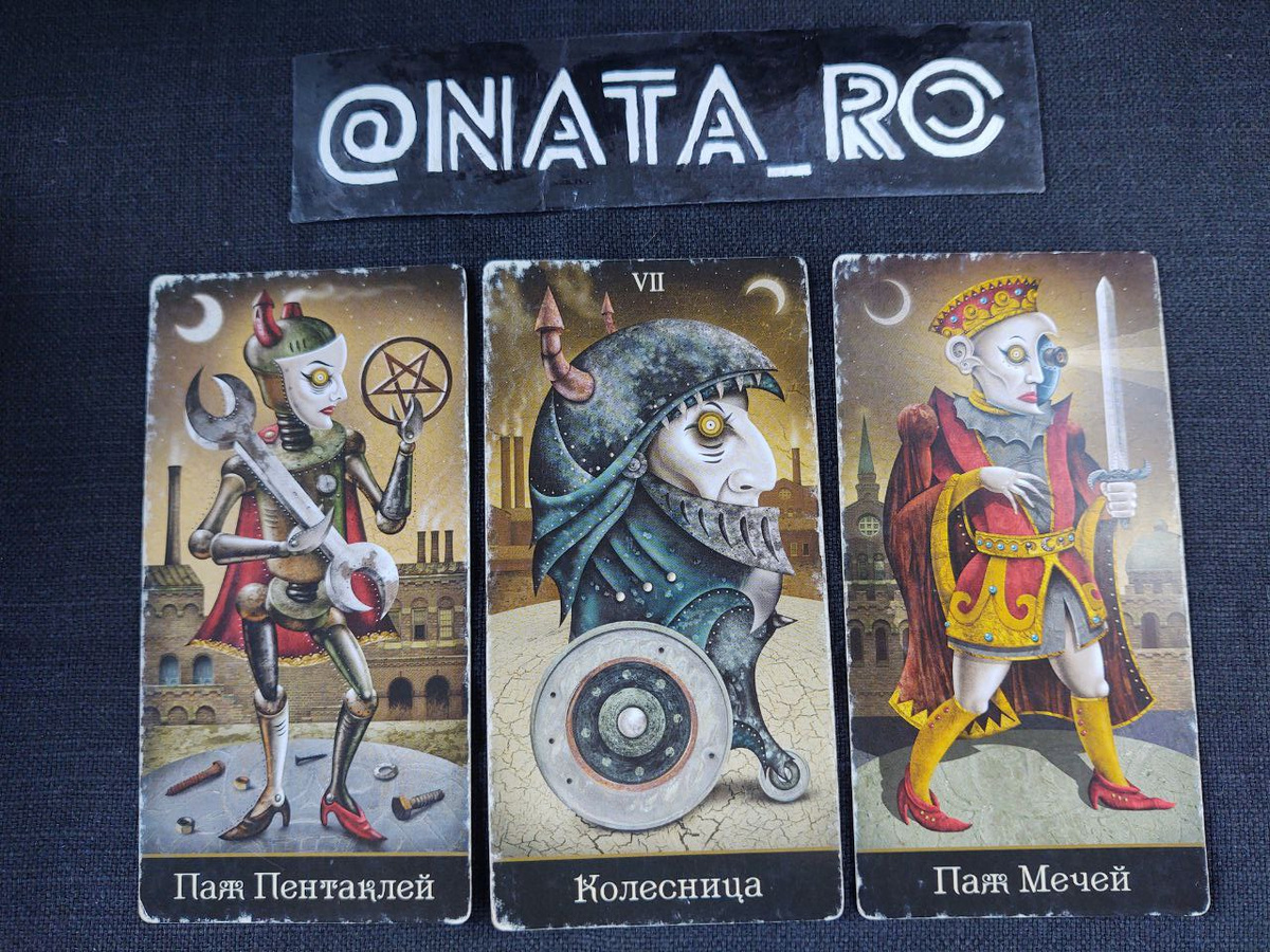 Что у нее с тем, другим? … Выпали: ПАЖ ПЕНТАКЛЕЙ… КОЛЕСНИЦА…ПАЖ МЕЧЕЙ… Старший аркан Колесница, в колоде Безумная Луна, говорит нам о человеке-машине. У него нет чувств, нет сочувствия и сожаления. Есть только обреченность и слепая вера в то, что когда-нибудь он доберется до пункта назначения. Персонаж Колесницы много повидал на своем веку. На его теле и в его душе множество шрамов, навечно сросшихся в броню, которая надежно охраняет его от посягательств извне. Это один из кармических арканов, отражающих миссию и задачу загаданного человека. Человек, символизируемый этой картой, в жизни может быть вполне коммуникабельным и довольно приятным в общении, однако у этого общения существуют рамки, которые можно назвать личными границами. И в эти пресловутые личные границы человек впускает единицы, а в некоторых случаях не впускает никого. Если наличие развитого интеллекта для жизни человека- хорошо, то отсутствие ярко выраженного бессознательного, говорит нам о сухости и отсутствии каких бы