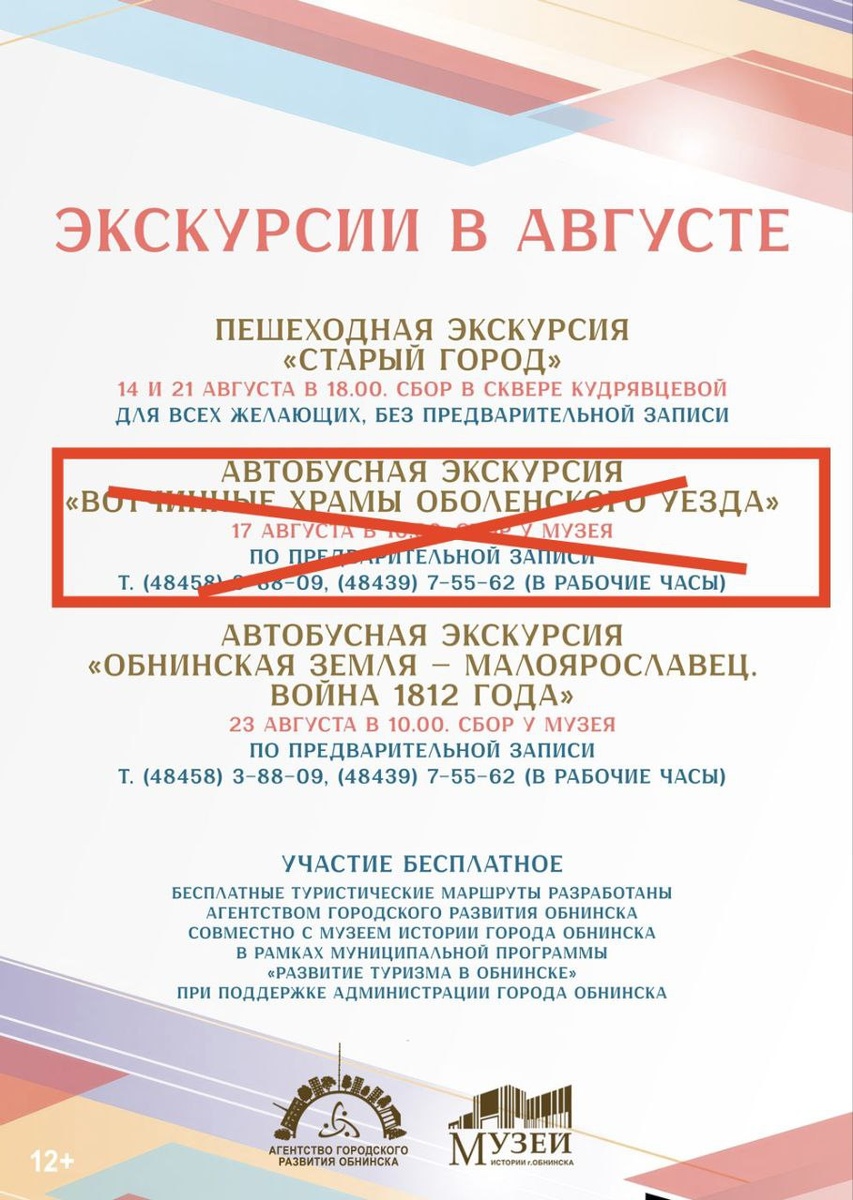 ❌По техническим причинам отменена автобусная экскурсия "Вотчинные храмы Оболенского уезда", которая должна была состояться 17 августа в