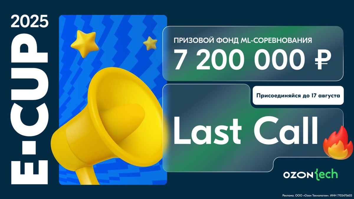 Последние дни регистрации на E-CUP 2025 — самое масштабное ML-соревнование от Ozon Tech с призовым фондом 7 200 000 рублей