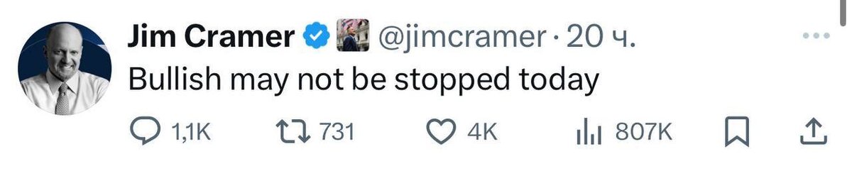 Как только он пишет, что «бычий рынок не остановить», рынок мгновенно разворачивается