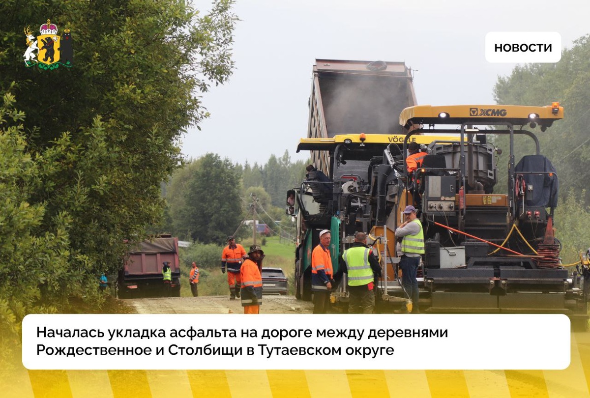 Началась укладка асфальта на дороге между деревнями Рождественное и Столбищи В Тутаевском округе активно идут работы по ремонту пятикилометрового участка дороги между деревнями Рождественное и Столбищи. Проект реализуется в рамках нацпроекта «Инфраструктура для жизни», причем с опережением графика. Текущие работы ведутся на участке от Кузьминского через Осташево и Столбищи до Рождественного. Общая протяженность дороги — 25 километров, но ремонт проводится поэтапно. В следующем году планируется отремонтировать еще 11 километров в сторону деревни Ильинское. Проблемные участки дорожного полотна укрепили методом холодной регенерации, смешав старое покрытие со щебнем, битумной эмульсией и цементом. Это обеспечивает прочность основания. Срок завершения работ по контракту — март 2026 года, но подрядчик намерен закончить основные этапы уже в сентябре этого года. После укладки асфальта и проверки его качества начнется укрепление обочин, нанесение разметки и замена дорожных знаков.