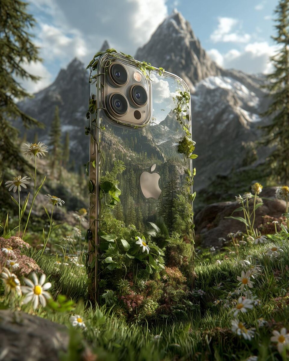 Заброшенные объекты в Midjourney Шаблон промпта: [описание объекта] standing in a lush, vibrant mountain landscape. partially wrapped with green leaves and natural vines in a way that looks organic and artistic, [объект] logo remains clean and fully visible. Wildflowers and soft grass surround the base, with sunlight filtering through In the background, tall snowy peaks and blue skies with light clouds. refreshing composition, rooted in nature, full of life, Cinematic lighting, fine texture on leaves and glass, branded realism highly detailed, hyper-realistic --ar 4:5 --style raw --v 7 --stylize 250 ❤️ Примерами своих генераций вы можете поделиться в нашем уютном чатике @neuro_smoking #midjourney@dailyprompts